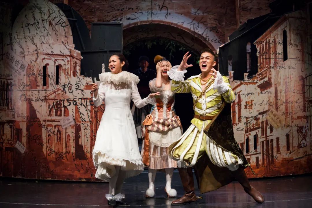 佛林都和比雅是剧中的一对苦命情人,从米兰逃亡到威尼斯,为了躲避仇人,必须隐姓埋名,比雅甚至为了保护自己而扮演成了自己哥哥的模样。而隐瞒身份并没有让事情往好的方向发展,反而让情人见面变得更加困难。